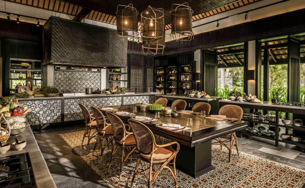 The Nam Hai Cooking Academy and beachside dining offer farm-to-table experiences steeped in Vietnamese flavors